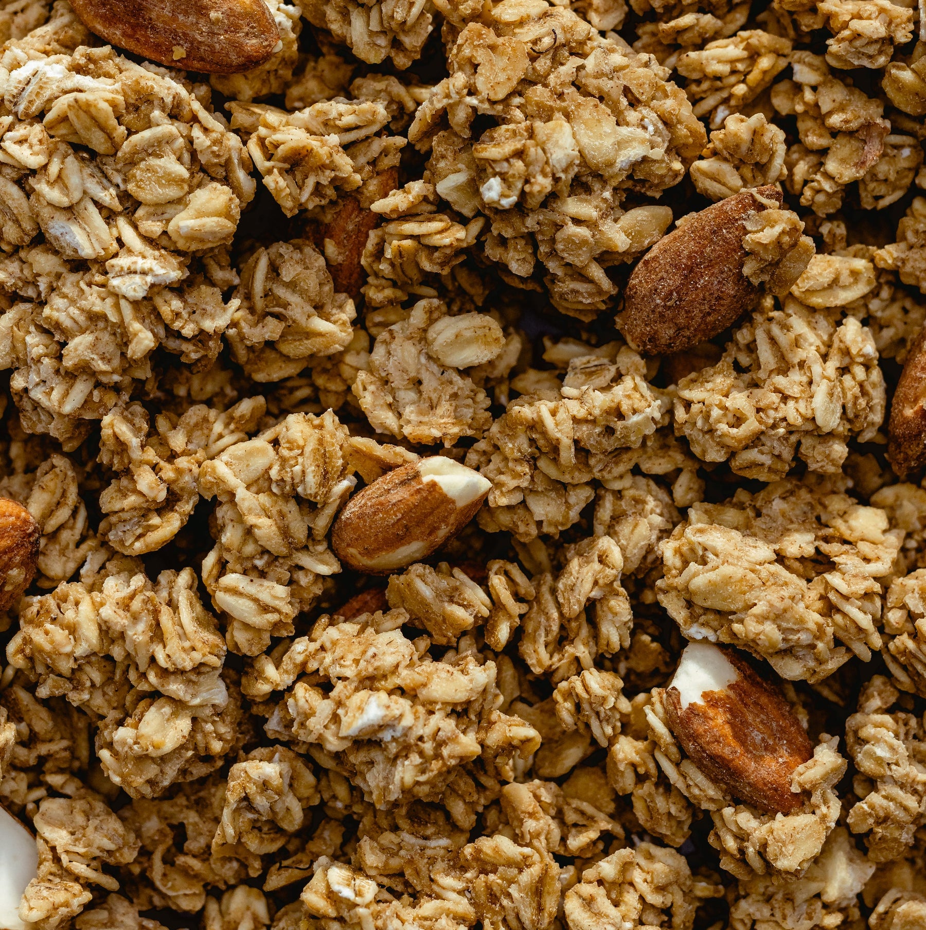 Ingredients: Organic rolled oats, organic coconut oil, raw honey, pure maple syrup, organic soaked and sprouted crispy almonds, organic bananas, organic vanilla, organic almond extract, organic cinnamon, Celtic salt, organic lemon juice. Nothing else.